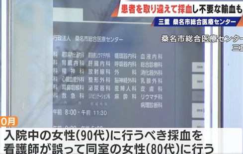 地方独立行政法人桑名市総合医療センター(三重県)が、患者を取り違えて採血し、輸血の必要がない患者に輸血する医療ミスがあったことを公表しました。