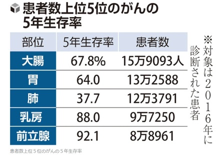生存率が高かったのは、前立腺がんの92・1%、乳房癌の88%など。