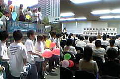 そして一ヶ月経った今回の期日。小雨の降りしきる中、多数の皆様に応援に駆けつけて頂きまして、ありがとうございました。午前・午後入れ替え・報告集会などを含めると、延べ300名近い支援者の方にお越し頂きました。